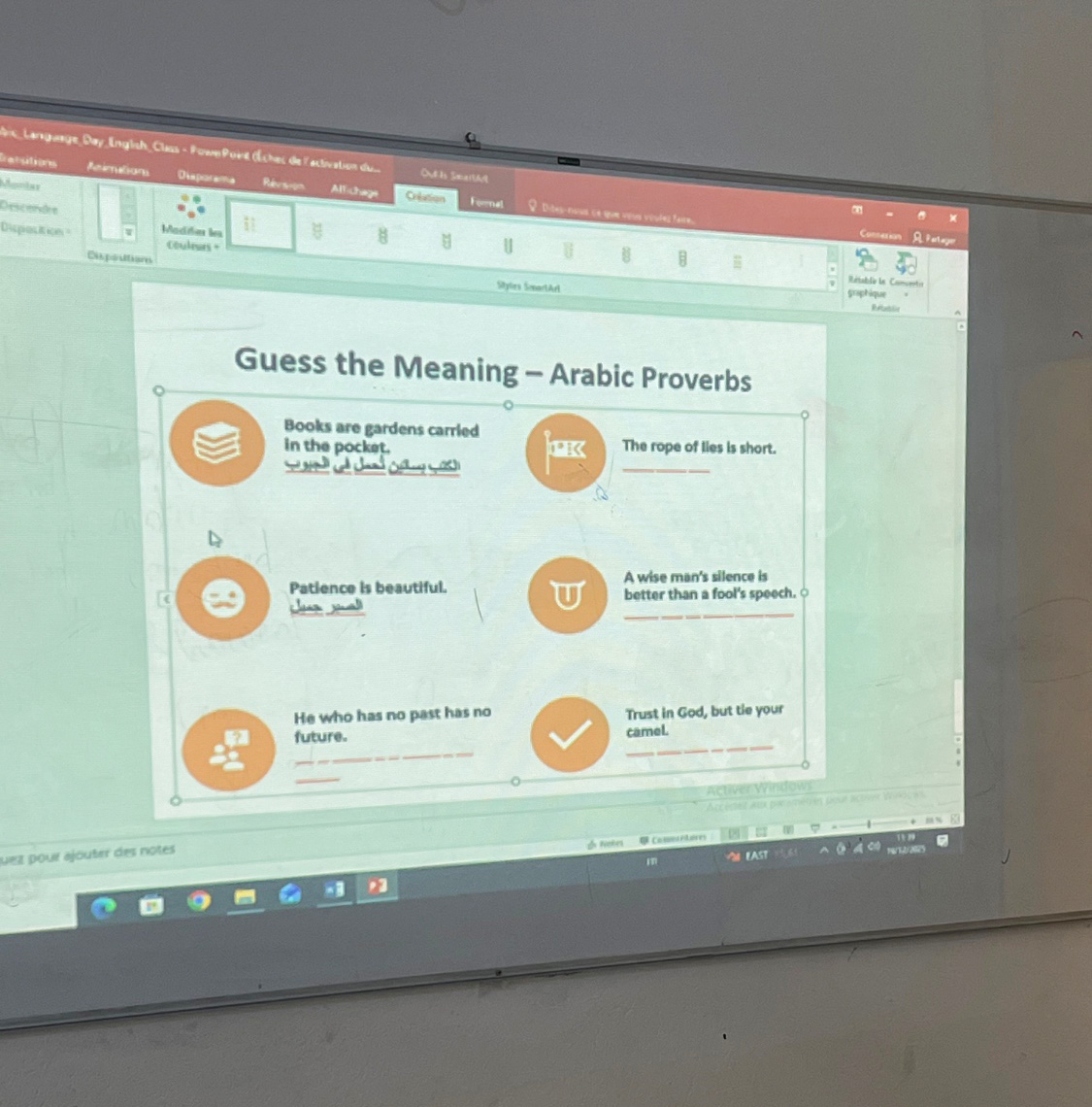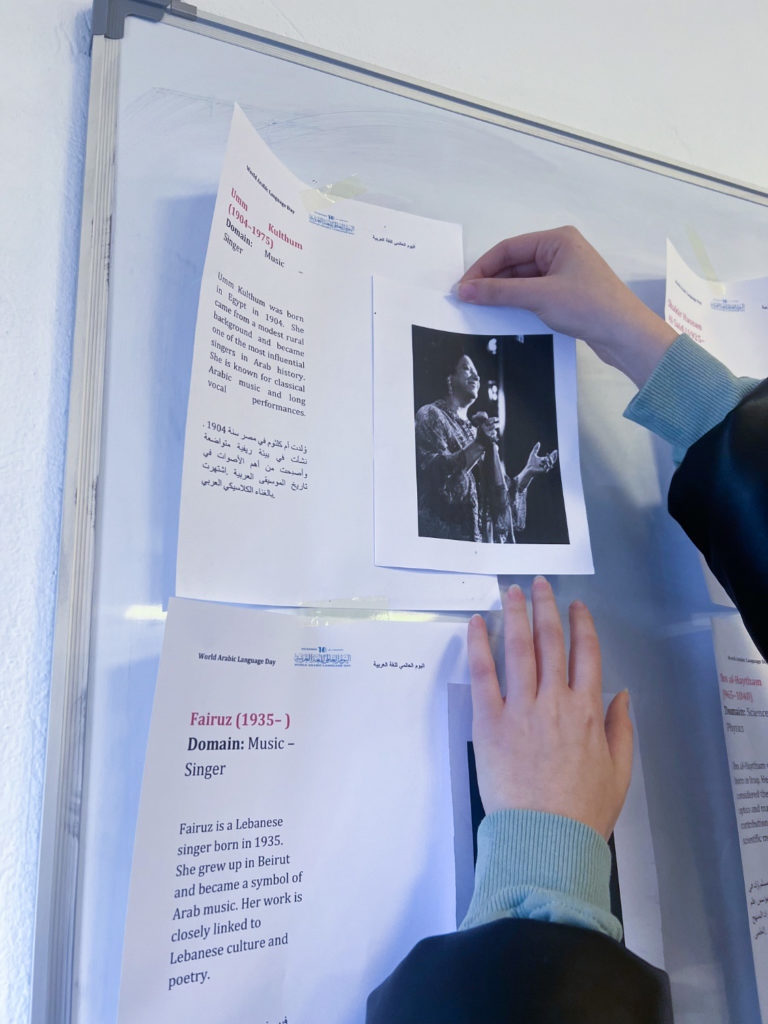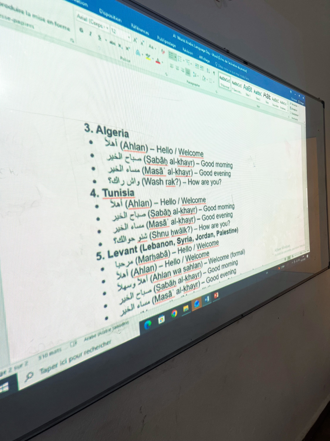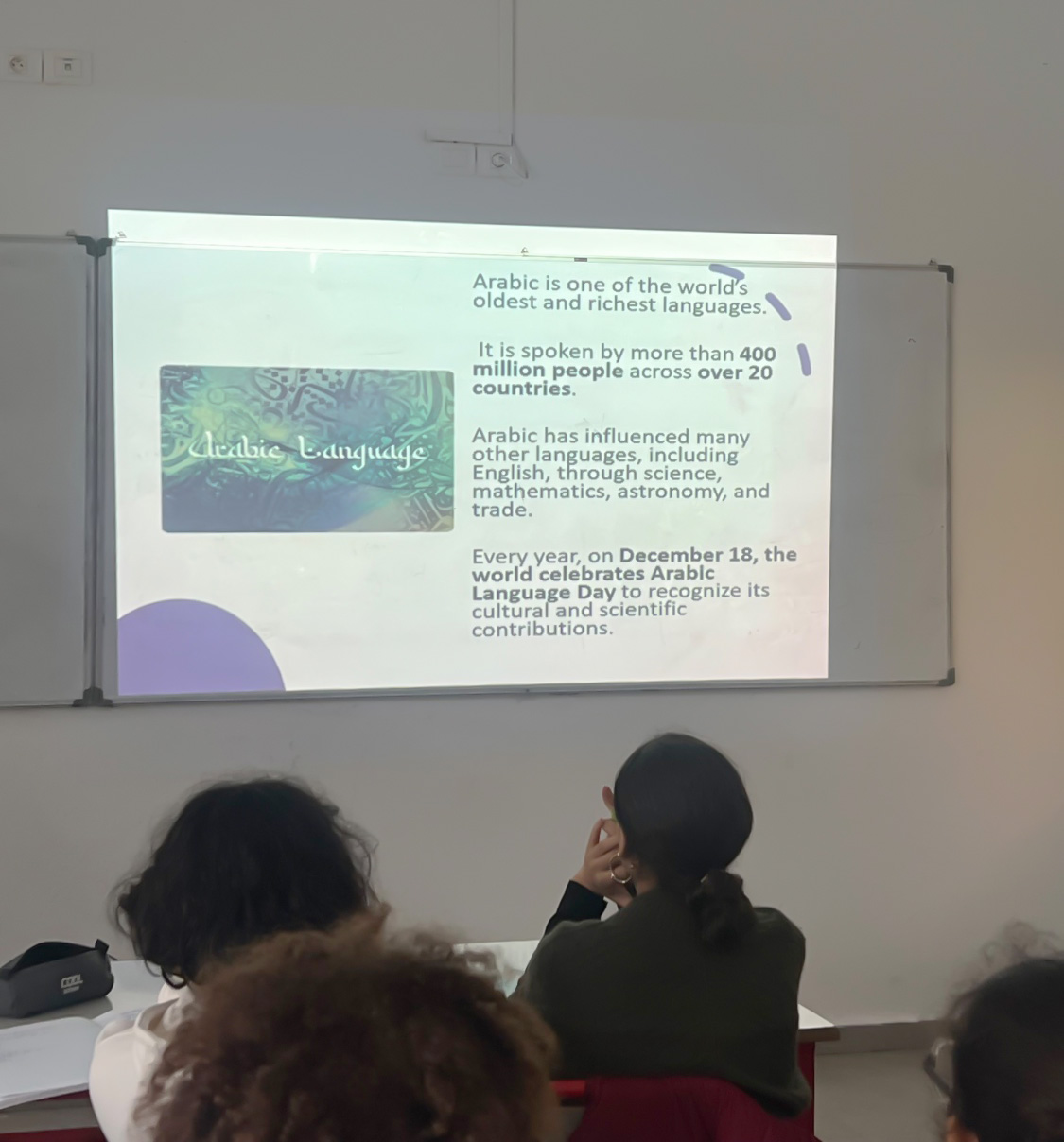 À l’occasion de la Journée mondiale de la langue arabe, les élèves de la classe de 3e 1, en cours d’anglais, ont participé à une activité interculturelle mettant en lumière la richesse et l’influence de la langue arabe.