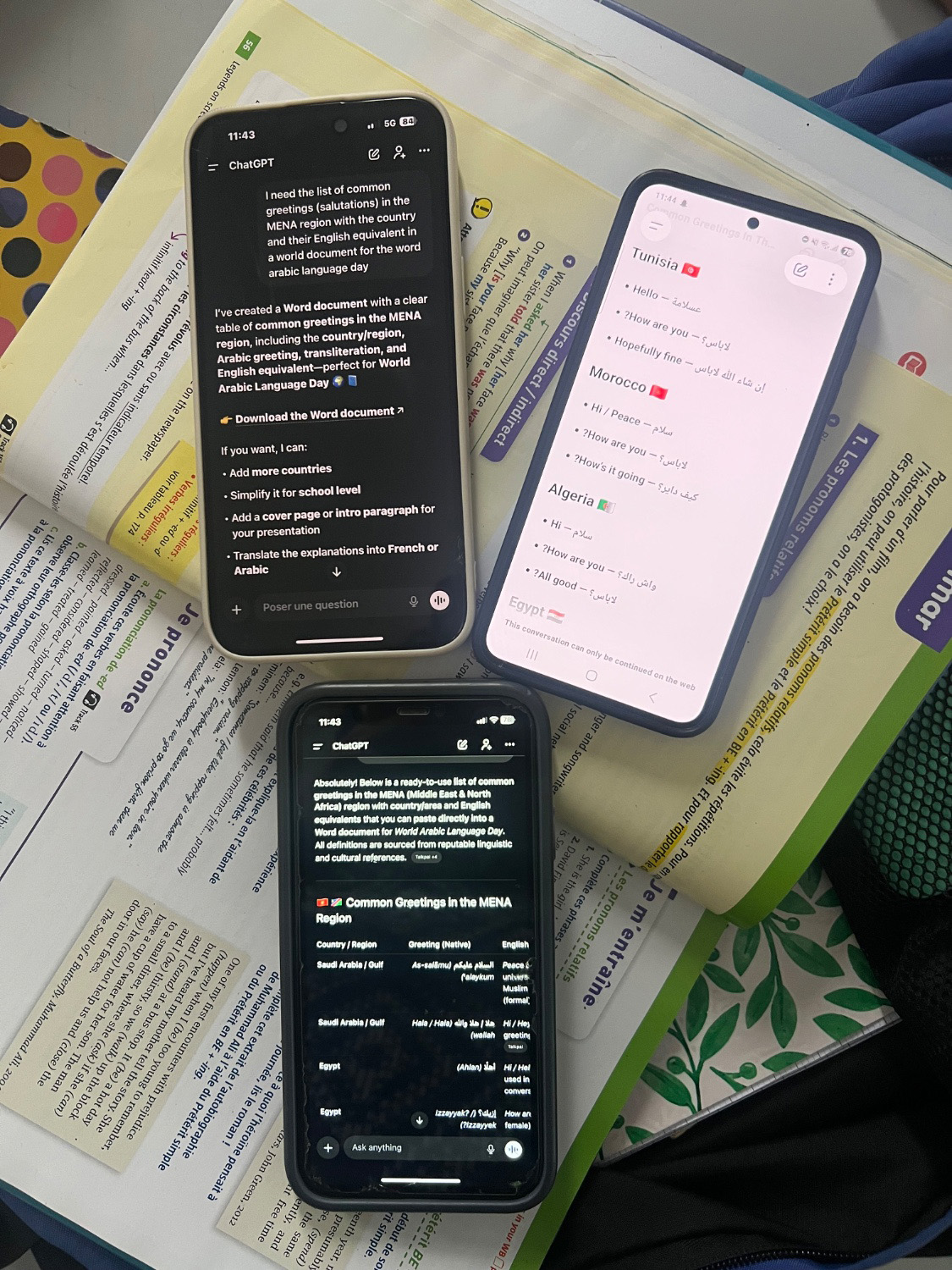 En lien avec le thème de cette édition, les élèves ont mobilisé l’intelligence artificielle pour travailler sur les salutations dans les pays de la région MENA, en arabe et