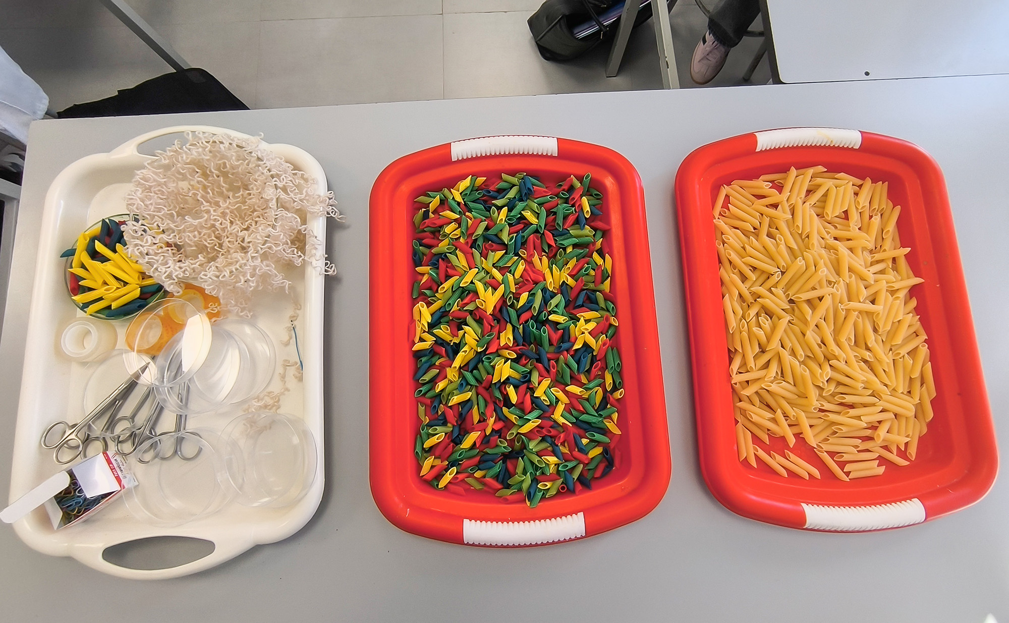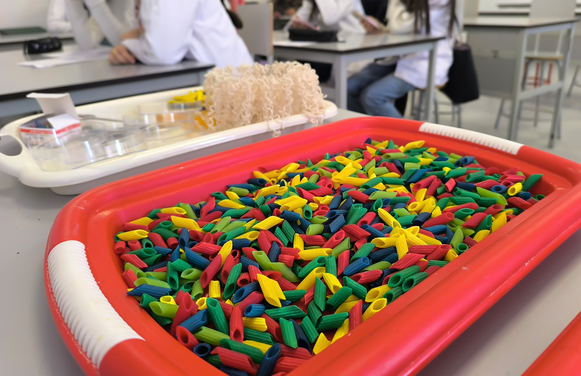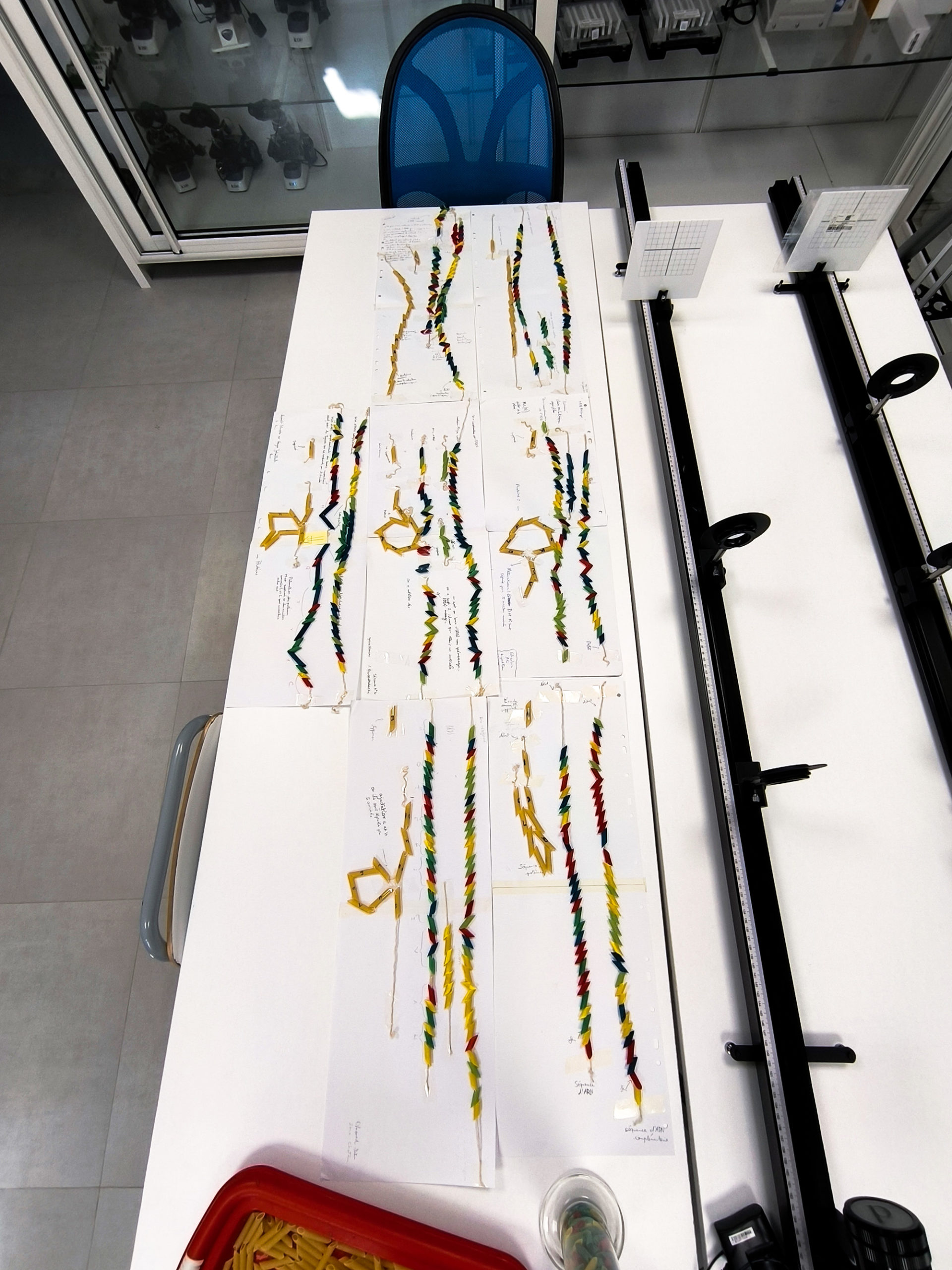 Armés de fils de laine et de pâtes colorées — bleues, vertes, rouges, jaunes pour symboliser les nucléotides — ils ont d’abord construit le brin complémentaire d’une séquence d’ADN.